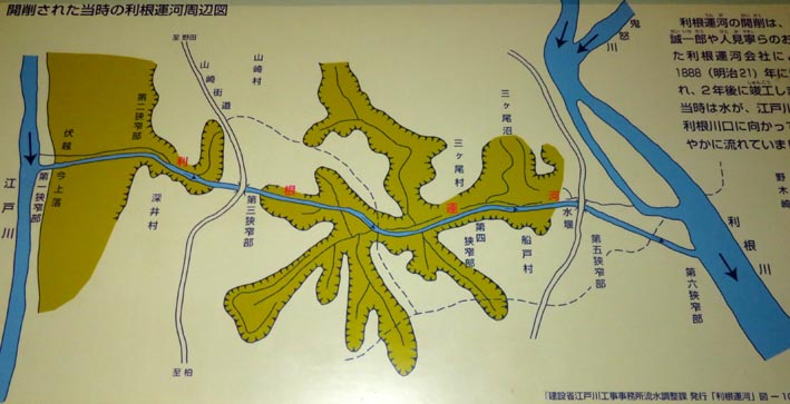 博物館内の展示パネルにおける説明書き要旨は以下の通りである。昔、東京から銚子方面へ行く場合、「利根運河」(利根川と江戸川を結ぶ運河)の開通以前においては、江戸川