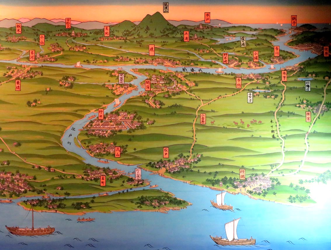 江戸湾から北関東圏を鳥瞰する。図絵にはかなりの歪があるが、利根川と江戸川
