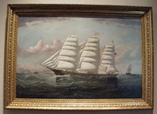 ![]() 博物館のメイン展示館。 [拡大画像(x4833.jpg)] ![]() 広大な敷地にはバースがあって、幾艘かのヨットや小舟も屋外展示されている。 館内展示: 帆船絵画 Ship Henry Failing by William Howard Yorke, 1884 [拡大画像(x4835.jpg)][英語説明書き(x4834.jpg)] ![]() 1
