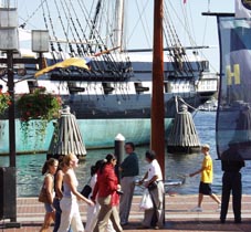 また、近くの別の桟橋には帆船「USS Constellation」が展示されている。
