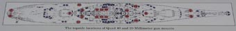 "The topside locations of Quad 40 and 20 Millimeter gun mounts" が示されている。