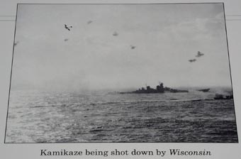 また、説明パネルには、戦艦Wisconsinに装備された Quad 40と20ミリメートル砲の上甲板配置図