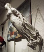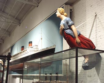 ザ・マリナーズ博物館は世界的に有名な海の博物館である。博物館正面入り口前に展示され、そのシンボルとなっている風見 「Wind Vane and Meridian Shere」。 これは1939-1940年のニューヨーク世界博覧会でのオランダ館のために設計されたもの。 [拡大画像(x5242.jpg)][拡大画像(x5244.jpg): 風見の英語説明書き] いろいろな船首像の展示