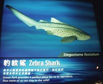 ・ zebra shark [拡大画像(x20302.jpg)][拡大画像(x20303.jpg): 説明書き][拡大画像(x20304.jpg): zebra shark, Stegostoma fasciatum, 中国名「豹紋鯊」]