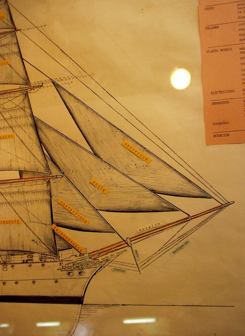 (1897-1997)の船橋(puente de navegacio'n)。船橋の後方に、煙突、メーンマストとその上部にあるクローズ
