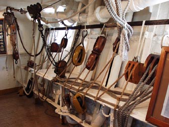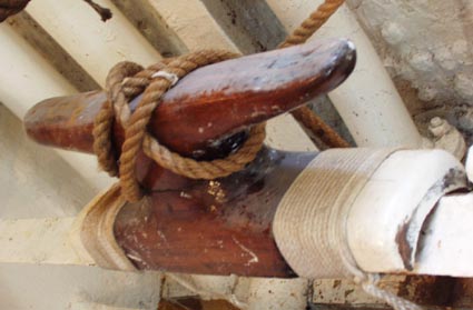 - [画像(x185.jpg)]マスト下部の甲板に設けられた索止め.