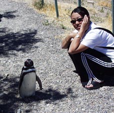 Punta Tombo, Costa de Patagonia [アルゼンチン・パタゴニア] ![]() - 海(大西洋)に向けて餌捕りに向かうペンギンの群れ。背後には広大な営巣地が広がっている。 [拡大画像(x151.jpg)] - 海岸に沿ってはるか彼方まで続くペンギンの群れ。 [拡大画像(1)(x152.jpg)][拡大画像(2)(x153.jpg)] ![]() - 営巣地内には見学用の歩道が柵で確保されている。ペンギンは人間が近づいてもさほど驚かない様子。 [拡大画像(x154.jpg)] - ペンギンは、小魚を求めて、かわるがわる海へ漁にでかける。 [拡大画像(x155.jpg)]