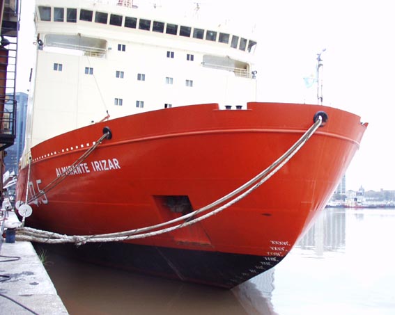 Antártica, Armada Argentina)。 "Alte. Irizar"は、本国と南極大陸を行き来する現役(2001年現在)就航の砕氷船で、冬期(6月)に一般公開されて いるところ[2001.6]。 一般公開時間(horario de visitas): 学校見学者(escuelas)は月~金曜日9:00~17:00、一般見学者 (pu'blico en general)は土・日曜日14:00~18:00。見学無料