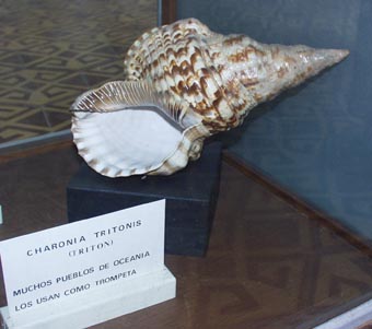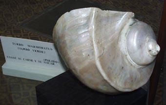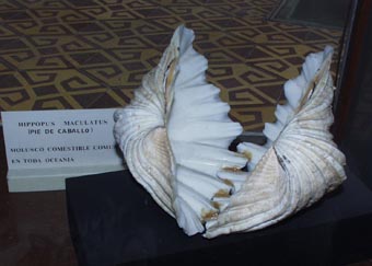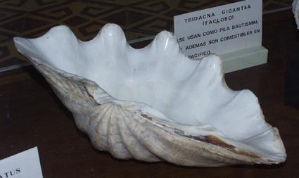13-[貝] Tridacna gigantea [西語: taclobo; Se usan como pila bautismal y son comestibles en el