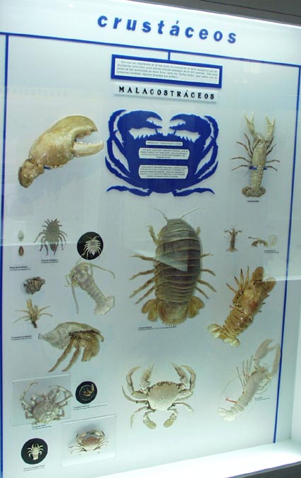 >[画像(x487.jpg)]アルゼンチン近海産の5~6種の甲殻類標本の展示.
