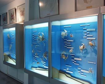 >[画像(x479.jpg)]館内展示風景。海洋生物[主に甲殻類]などの標本展示室.