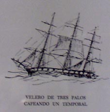 (4)velero de tres palos capeando un temporal(時化を乗り切ろうとしている3檣帆船)