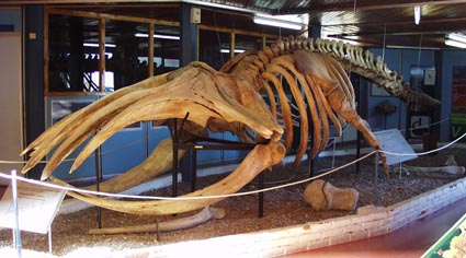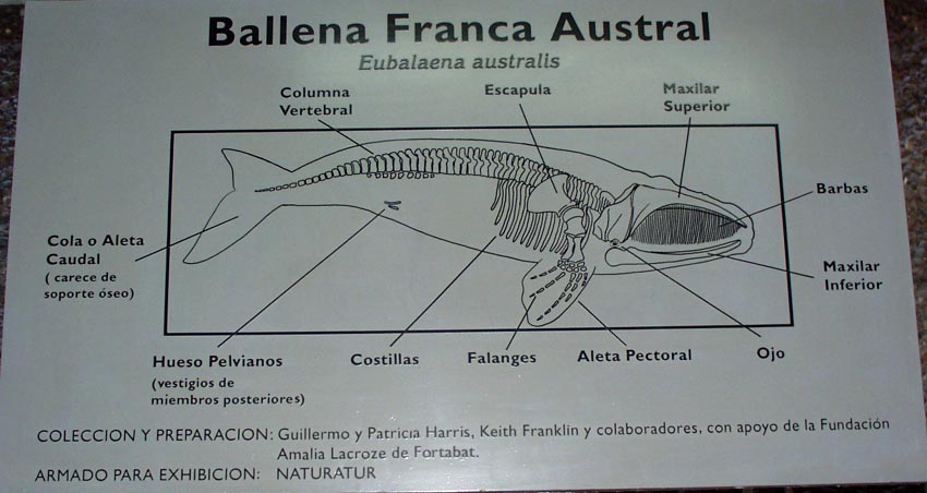 Centro de Interpretación del Istmo Carlos Ameghino [アルゼンチン/パタゴニア/バルデス半島への入り口] センター内の展示風景 [ballena franca austral; Eubalaena australis] 1 ![]() 1. 鯨の骨格標本 [西語] ballena franca austral; Eubalaena australis.