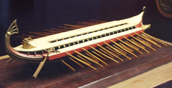 1- ギリシアの三列櫂(かい)の船