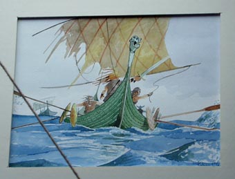 5- バイキングの軍船の水彩画 [拡大画像(x3120.jpg)]
