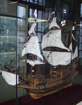 3-16世紀の英国ガレオン船 (galeão inglês Golden Hind; modelo de embarcação típica do
