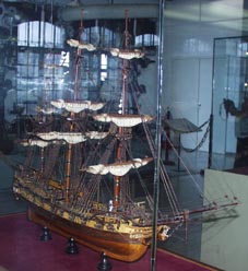 ブラジル沿岸で沈没した多くの帆船が海底に眠っている。海洋文化センターの一大展示はいろいろな沈船から