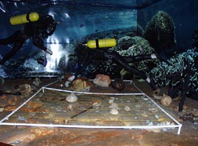 海底考古学的調査用の正方形メッシュ(quadri'culas em arqueologia subaquática)