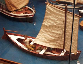 1- 人類は最初どんな方法・手段で海や湖で行き来したのか?この展示では、丸太や自然の流木などを