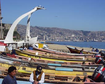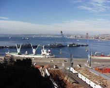 バルパライソの海と港(1) (軍港と商港が隣り合わせ)