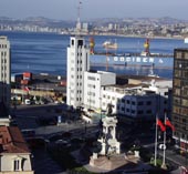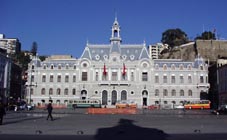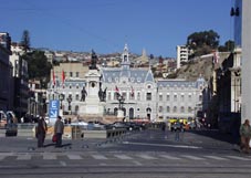 しゃれたバルパライソ市内案内地図のパネル チリ海軍(Armada de Chile)本部とソトマヨール広場の勇者の像 1 2![]() 1- チリ海軍本部とその前のソトマヨール広場 右上隅の崖の上にコクラン卿航海博物館がある 丘の上に一般居住区が広がっているのが見える(バルパライソ)[拡大画像(x4306.jpg)] チリ海軍のホームページ (http://www.dgmn.cl/) 2- ソトマヨール広場の勇者の像 背景の建物はチリ海軍本部 [拡大画像(x4307.jpg)]