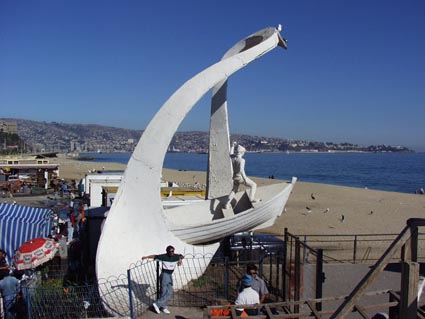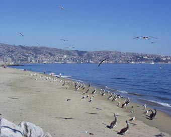 バルパライソの海辺 穏やかなバルパライソの海。まさに"穏やかな大洋"("Pacific Ocean"と呼ばれるにふさわしい。 ![]() 海鳥がのんびりと大空を舞い、浜で翼をやすめる。心やすまる海風景である。 [拡大画像(x4356.jpg)]