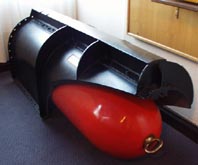 - tubo lanza torpedos魚雷発射管の一部(実物; 直径20インチ=約50cm、長さ7.2m)