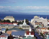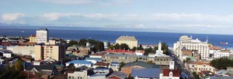 プンタ・アレーナスの街風景とマゼラン海峡 (対岸はTierra del Fuego島)