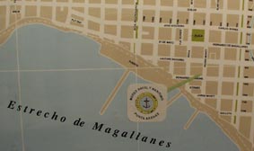 緑色の四角がPlazaで、その周辺が最もにぎやかで街の中心地である][拡大画像(x4135.jpg)][画像(x4134.jpg): Punta Arenas市内拡大図]