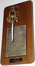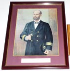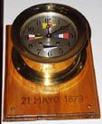 [拡大画像(x4125.jpg)]/Chelsea ship's bell (Prat肖像画と一緒に飾られた時鐘の盾: 「21 Mayo 1879」と印されている)