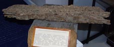 1- trozo de grada(f.造船台、船架) atacada por el parásito "broma"(f.[貝]フナクイムシ、船食い虫);