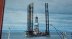 2- 海底着地型ジャッキアップ式石油掘削リグ(展示写真の一部: プンタ・アレナス港沖合に繋留されているリグ)