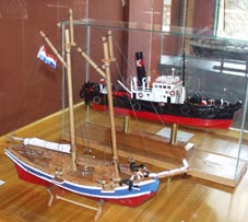 1- goleta aduanera(手前の2本マストの帆船/後画像はタグボート模型) [拡大画像(x3864.jpg)]