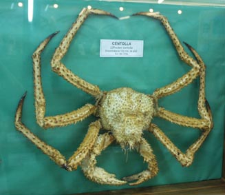 1. centolla, Lithodes santolla, encontrado a 100 mts. de profundidad, Sur de Chile
