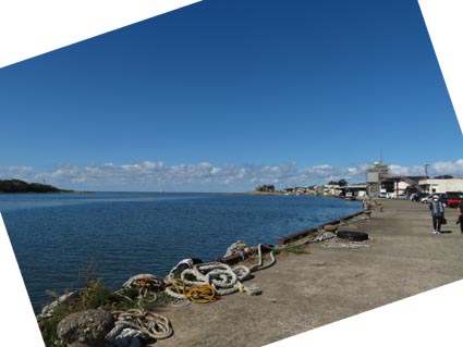 その後、明治17年になって、河口の北側に、沖に向けて緩くカーブしながら長く突き出す防波堤が建設された。