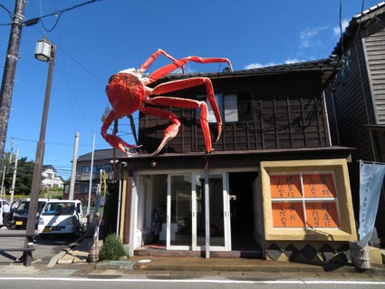 越前ガニの超巨大な広告塔である。今にも家屋を乗っ取ってしまうかの様相である。