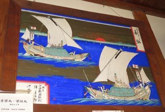 5 6 5. 嘉納丸、明治18年、角谷甚吉手船 加納妃彦助奉納 [拡大画像: x29094.jpg] 6. 神力丸・神通丸、明治10年、絵馬藤筆、板谷吉五郎奉納 [拡大画像: x29095.jpg]