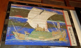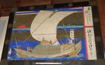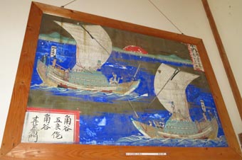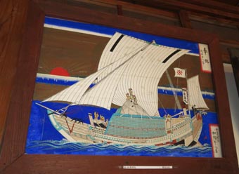 4 5 4. 広福丸、明治8年、加州瀬越沖船頭津田源平奉納 [拡大画像: x29098.jpg] 5. 両徳丸、明治13年、絵馬藤筆、新谷六良右エ衛門外3名奉納 [拡大画像: x29099.jpg]