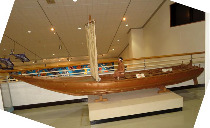 画像は海洋民俗をテーマにした「渚の博物館」(館山市立博物館分館)に展示される「猪牙舟(ちょきぶね)」(模型)である。