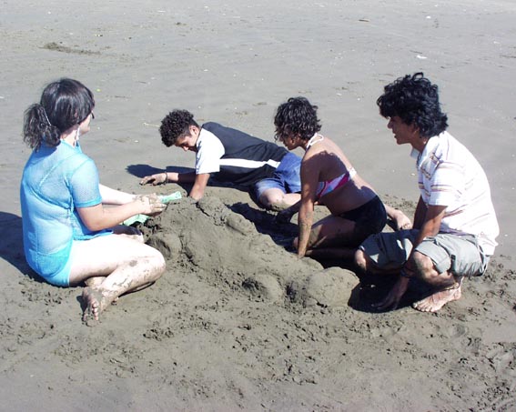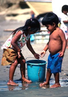 中米ニカラグア太平洋岸の漁村風景 [8]/砂と戯れる子供たち