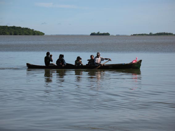 カリブ海沿岸の漁村にて [3]/ラグーンを漕ぎゆくファミリー [ニカラグア]