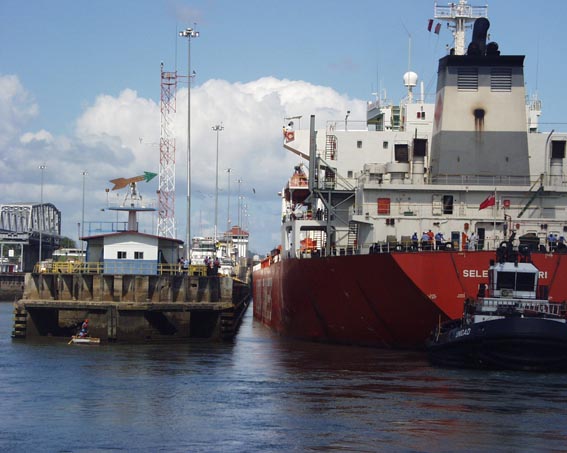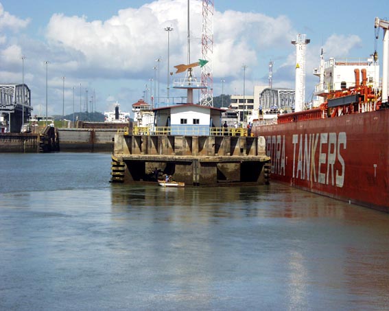 ミラ・フローレス閘門に入ろうとしているタンカー [パナマ運河]