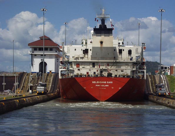 第二チャンバー (閘室) へ進むタンカー [パナマ運河]
