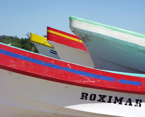 中米ニカラグア太平洋岸の漁村風景 [1]/沿岸ボートの彩色 (1)
