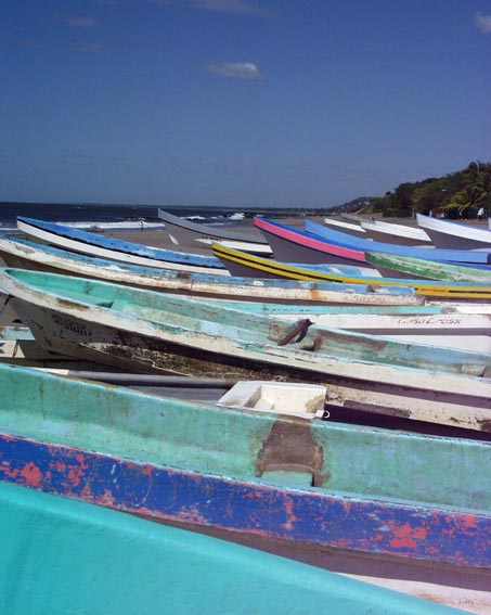 中米ニカラグア太平洋岸の海辺にて [2]/彩り豊かなボート