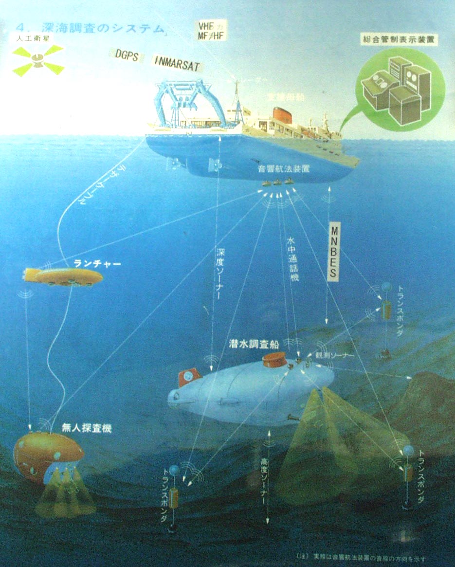支援母船からのテザーケーブルに繋がれたランチャーから無人探査機 「かいこう」 を潜航させれば可能である