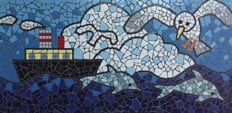3. [拡大画像: x18425.jpg] この画像の左手にある歩道沿いの側壁に6-7のモザイク画が施されている。