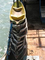 船にはダイバーたちが使うカヌーや酸素ボンベが搭載されている。