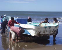 港はないから、漁を終えた漁民たちはボートを浜上げする。