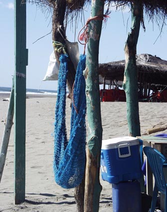 のんびりと憩う主人もいないハンモック。週末だが何となく人気が少なかったラ・ボキータの海岸であった。